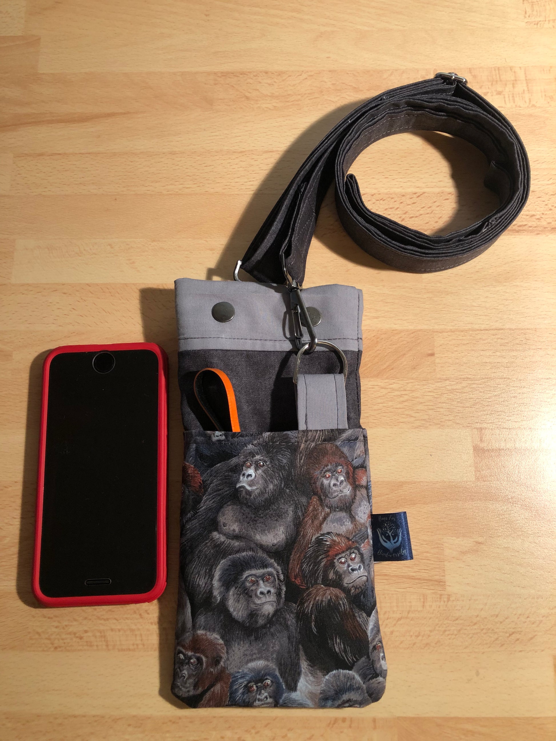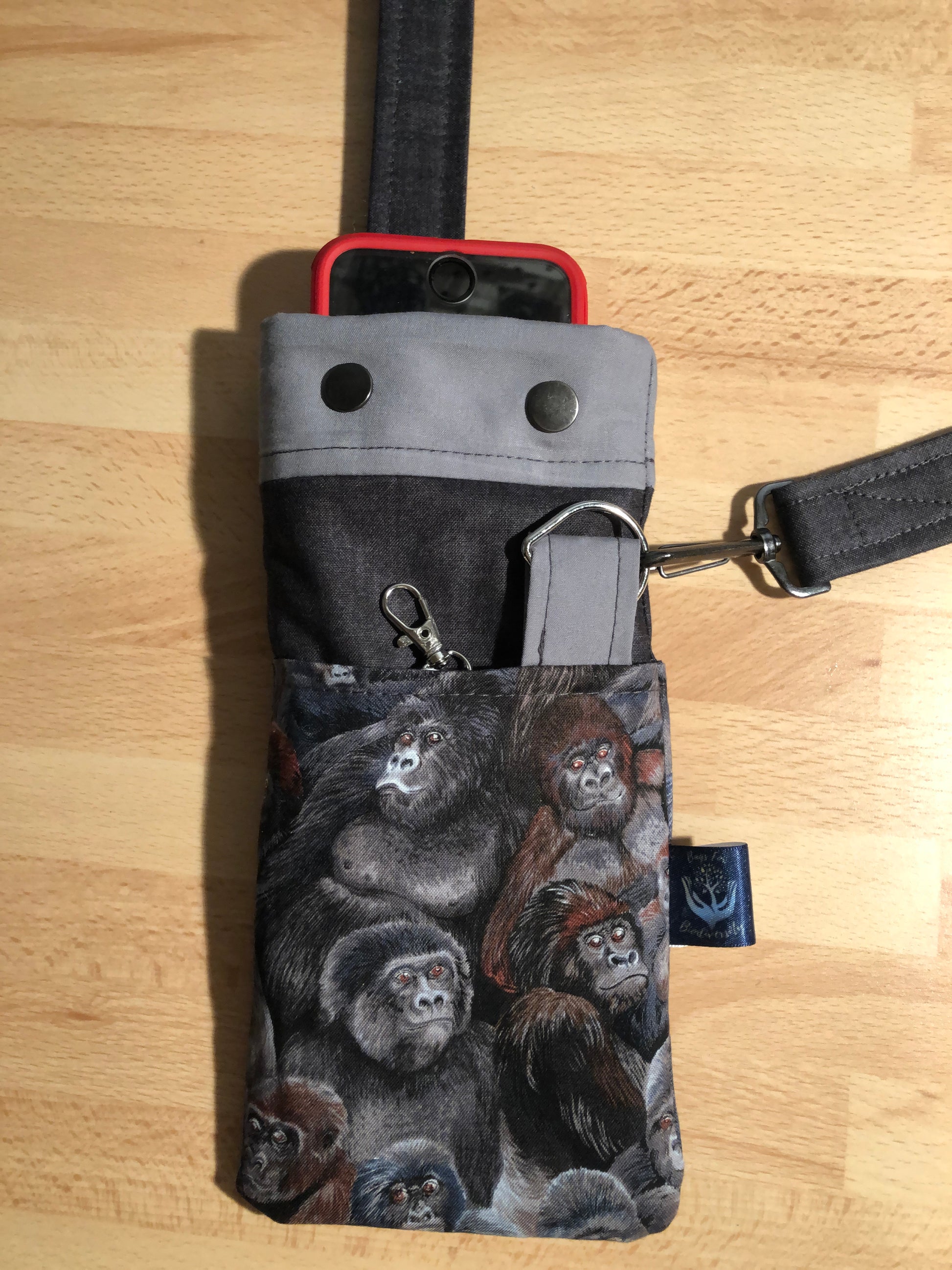 Gorilla phone bag with detachable strap and key carabine